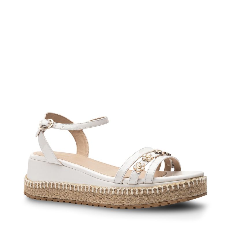Un toque floral para tus días de sol. Esta alpargata es el equilibrio perfecto entre frescura y estilo. Su suela estilo yute le da ese aire artesanal que amamos para los días cálidos, mientras que la cinta ajustable en el tobillo asegura comodidad a cada paso. El detalle más encantador: pequeños charms de flores blancas en la cinta frontal, añadiendo un toque femenino y delicado a cada look. Ideales para paseos por la ciudad, escapadas a la playa o simplemente para sentirte linda y ligera.