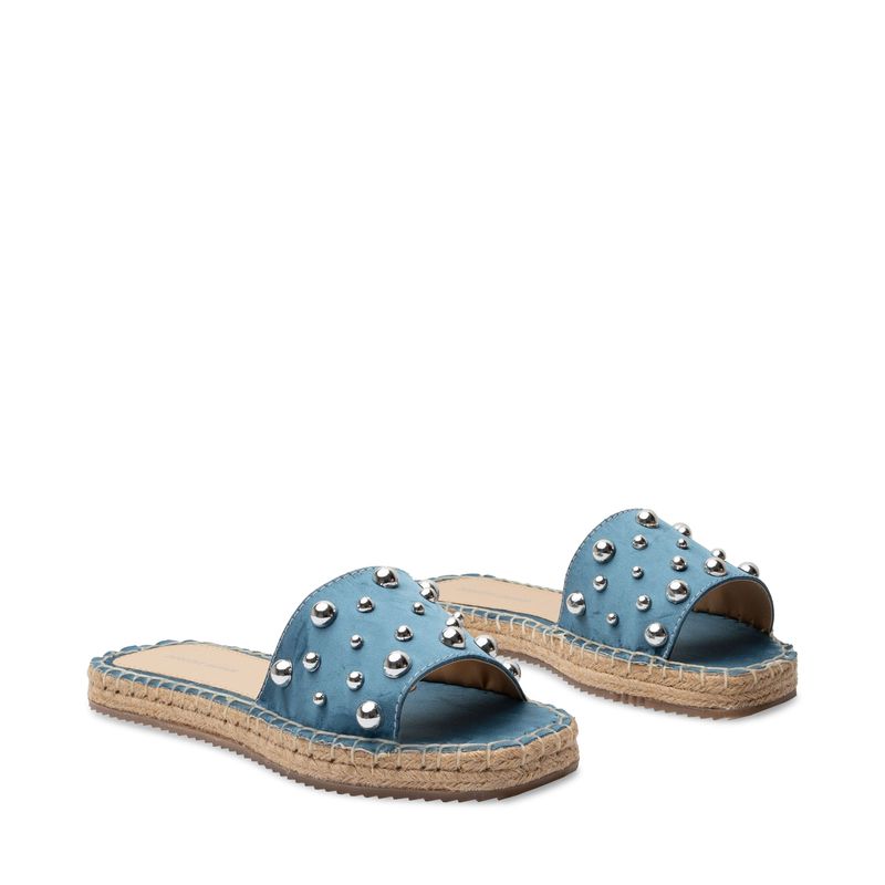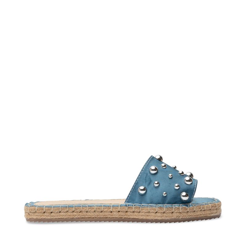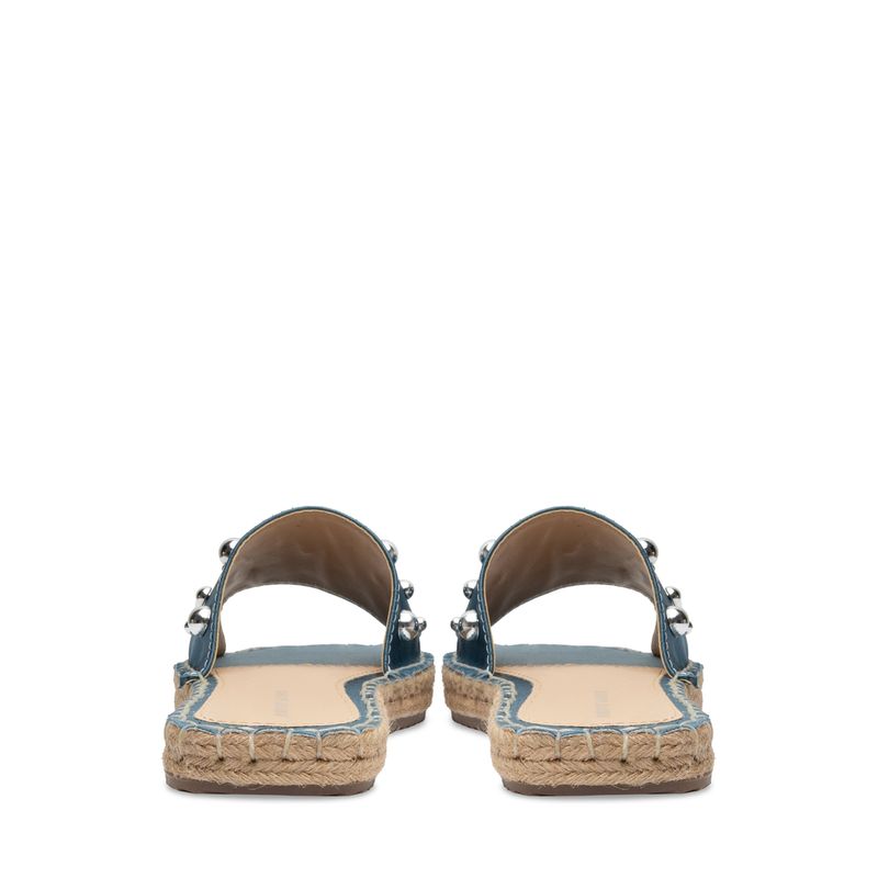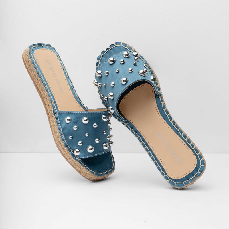 Luce fresca y con estilo en tus días casuales con esta alpargata color azul. Su diseño moderno destaca por la cinta central con elegantes detalles en plata, que añaden un toque sofisticado y llamativo a tu look. La suela con textura de yute no solo le da un aire veraniego y chic, sino que también ofrece una pisada cómoda y ligera. Perfecta para combinar con tus outfits favoritos, esta sandalia es ideal para estar cómoda y fresca sin perder el estilo.