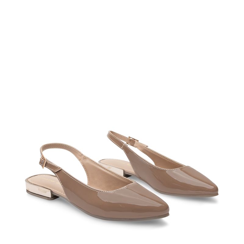 Eleva tu estilo con estas sofisticadas balerinas en color tan, diseñadas con un acabado brillante que añade un toque glamoroso a cualquier look. Su impresionante tacón en tono oro no solo realza tu outfit, sino que también le aporta un detalle moderno y elegante. Su cinta ajustable te ofrece un ajuste perfecto, mientras que su tacón grueso y bajo proporciona estabilidad y confort, ideal para lucir espectacular todo el día. Perfectas para combinar con cualquier conjunto, estas balerinas son el complemento versátil y chic que estabas buscando.