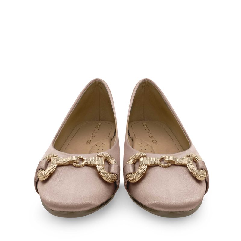 Estas balerinas son de las que puedes usar para una salida casual o para ir a la oficina, este par tiene un diseño increíble que le dará a tu estilo un toque de color. Atrévete a usar este par y verte increíble. Características. Material sintético | Color Oro Rosa | Detalle en el peine | Altura suela 1 cm | Marca Dorothy Gaynor