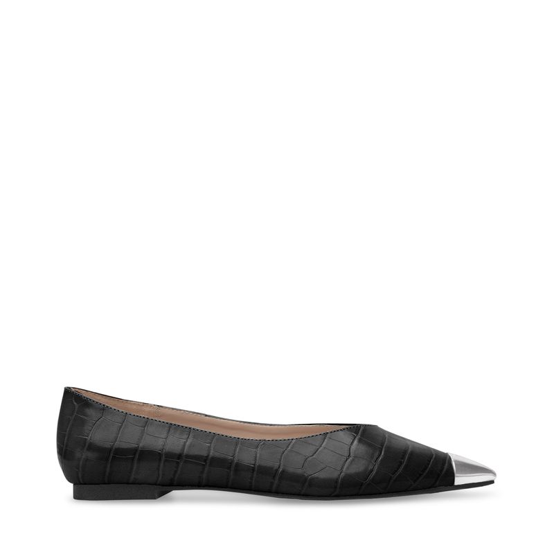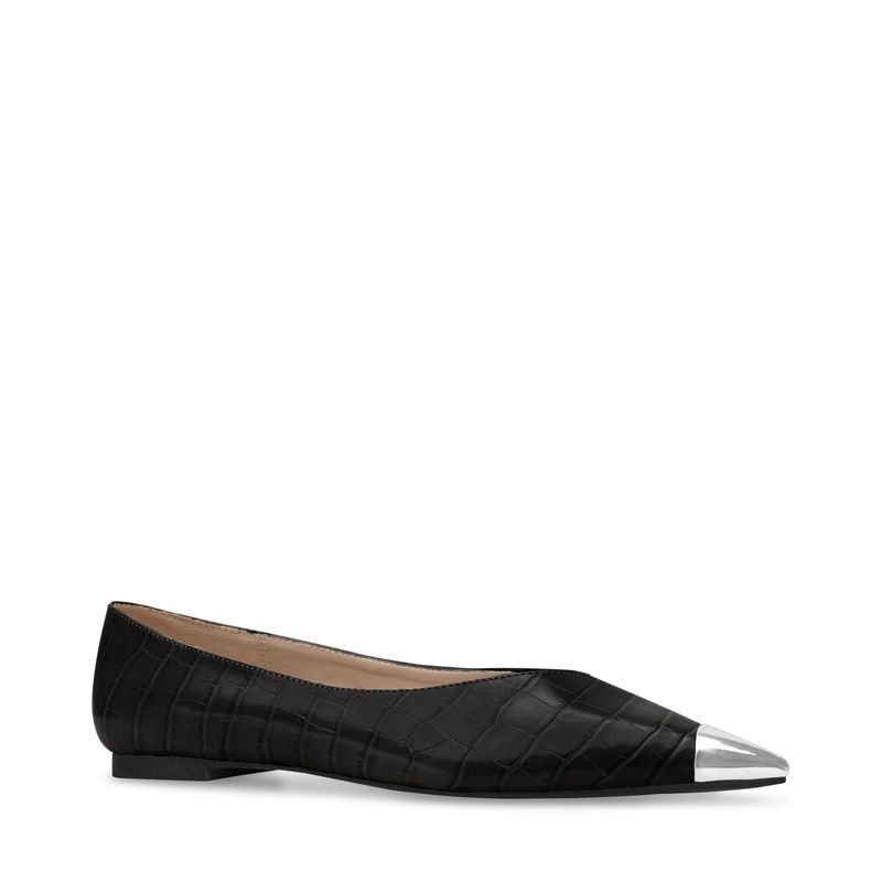 Suma un toque de elegancia y sofisticación a tu estilo con esta balerina negra, diseñada con una increíble textura croco que le aporta un aire único y moderno. El detalle dorado en la punta le da un toque de lujo discreto, elevando tu look de manera sutil pero impactante. Perfecta para lucir cómoda y a la moda en cualquier ocasión, esta balerina combina versatilidad y estilo, convirtiéndola en un must-have para tu día a día.
