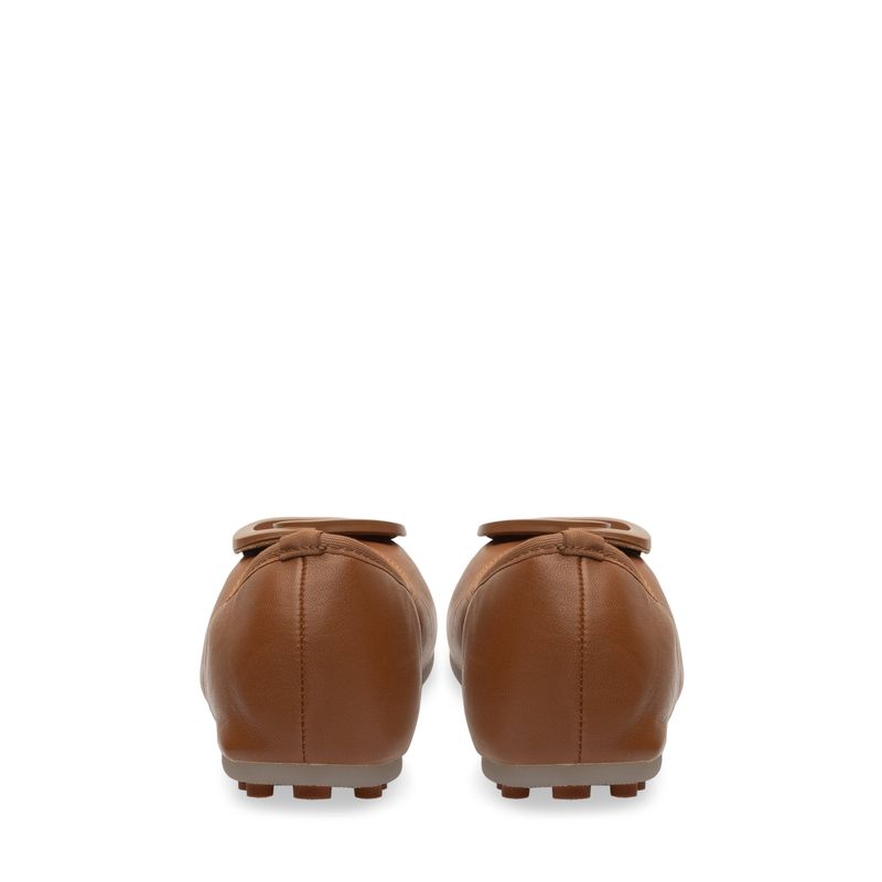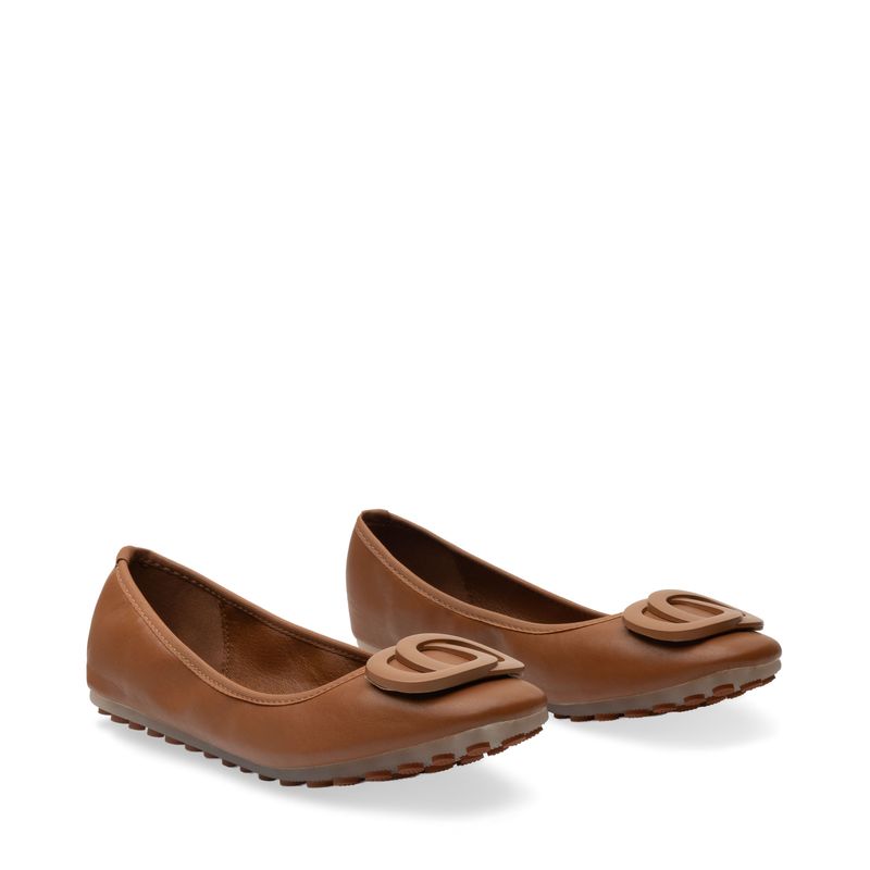 Diseño clásico con un giro moderno. Esta balerina en color cognac combina elegancia y funcionalidad, ideal para el día a día sin sacrificar estilo. El detalle de doble hebilla en la parte frontal le aporta un toque distintivo y sofisticado, mientras que la suela flexible garantiza una pisada cómoda y ligera durante toda la jornada. Versátil y atemporal, es perfecta para complementar desde un outfit de oficina hasta un look casual de fin de semana.