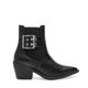 Esta bota corta en tono negro combina estilo clásico con un toque moderno gracias a su hebilla metálica en acabado envejecido. Elaborada en material tipo piel de textura suave, cuenta con panel lateral elástico que facilita el calce y asegura un ajuste flexible. Su tacón ancho de altura media proporciona comodidad y estabilidad, ideal para llevar todo el día. Perfecta para looks casuales o semi formales, desde jeans hasta vestidos.