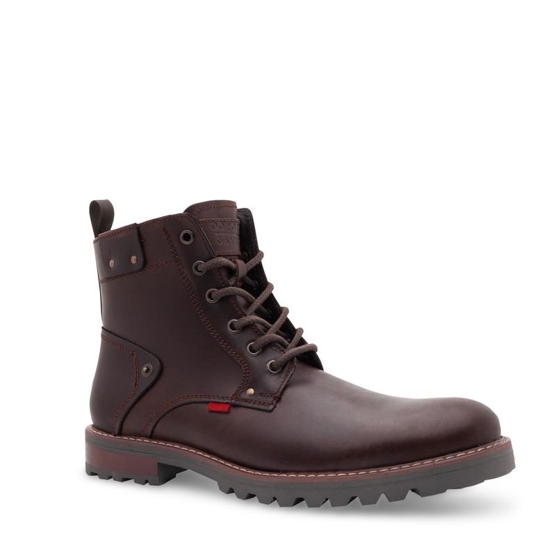 Esta bota color chocolate ofrece una construcción resistente con acabado piel mate y costuras visibles que refuerzan su carácter robusto. Detalles metálicos y etiqueta lateral añaden un toque distintivo. La suela dentada asegura tracción y durabilidad, mientras su diseño clásico combina fuerza y estilo para tus looks más relajados o aventureros.