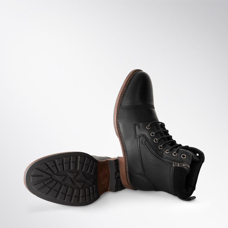 Este botín en color negro es la opción perfecta para lucir con estilo y comodidad esta temporada. Su diseño moderno y versátil cuenta con cintas ajustables, brindando un ajuste personalizado y seguro. Confeccionados con materiales de alta calidad, estos botines no solo destacan por su durabilidad, sino también por su capacidad de mantenerte cómodo en todo momento. Combínalos fácilmente y siéntete seguro y a la moda en cualquier ocasión.