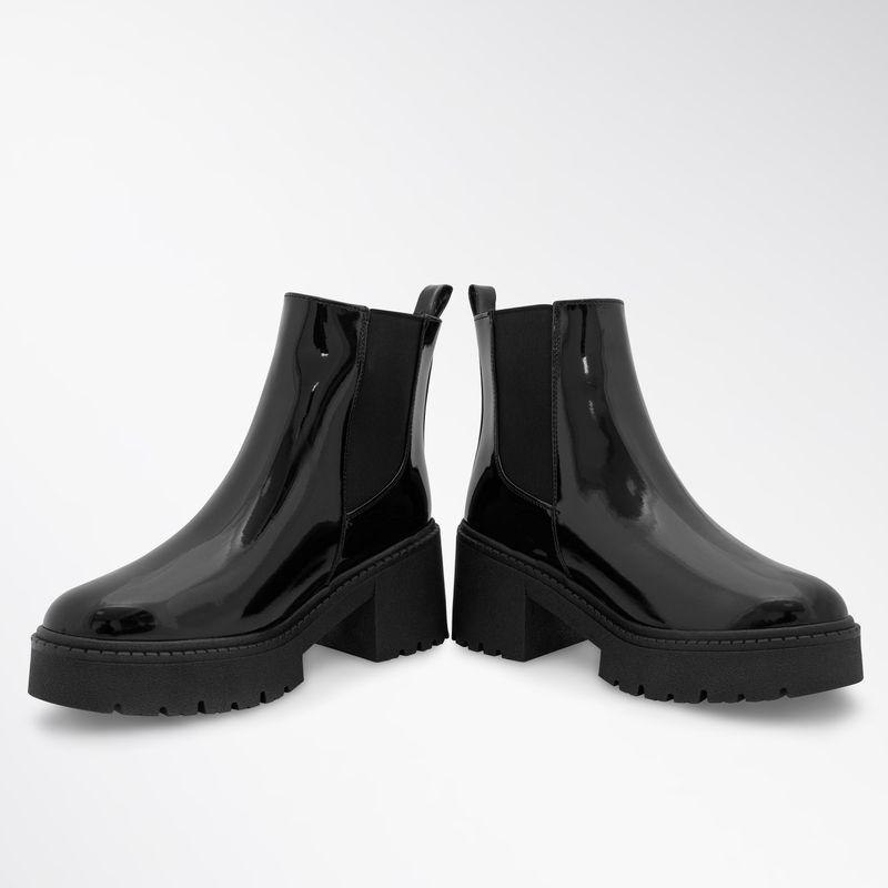 Descubre la fusión perfecta entre sofisticación y audacia con nuestro botín negro de charol. Este elegante calzado destaca por su textura de charol brillante, que añade un toque de distinción a cualquier atuendo. Su diseño clásico se actualiza con un acabado moderno que captura la luz y resalta tu estilo único. Ideal para cualquier ocasión, desde una salida nocturna hasta una reunión importante, este botín transforma tu look con un aire contemporáneo y elegante.