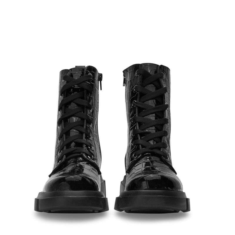 Este botín en color negro con una elegante textura croco es el toque de distinción que necesitas para tus looks. Su diseño único combina modernidad y estilo, mientras que las cintas ajustables aseguran un ajuste personalizado para mayor comodidad. Perfecto para estar a la moda sin sacrificar el confort, este botín es ideal para cualquier ocasión, desde eventos casuales hasta salidas más sofisticadas. Atrévete a destacar con un calzado que equilibra practicidad y estilo con un toque de originalidad.