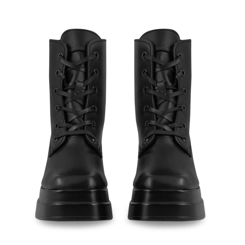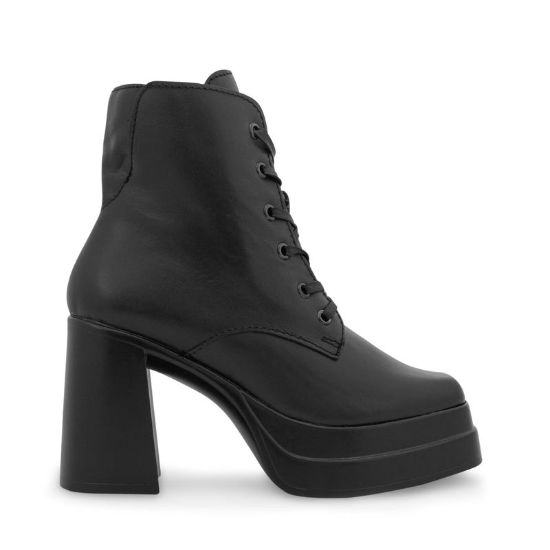 Este botín en color negro es el calzado perfecto para destacar. Con un tacón grueso y una plataforma que ofrecen altura y comodidad, y cintas ajustables que añaden un toque audaz, es el complemento ideal para cualquier outfit a la moda. Perfecto para quienes buscan un estilo impactante y sofisticado.