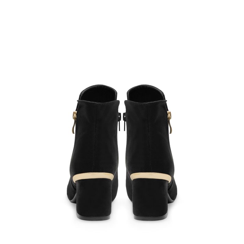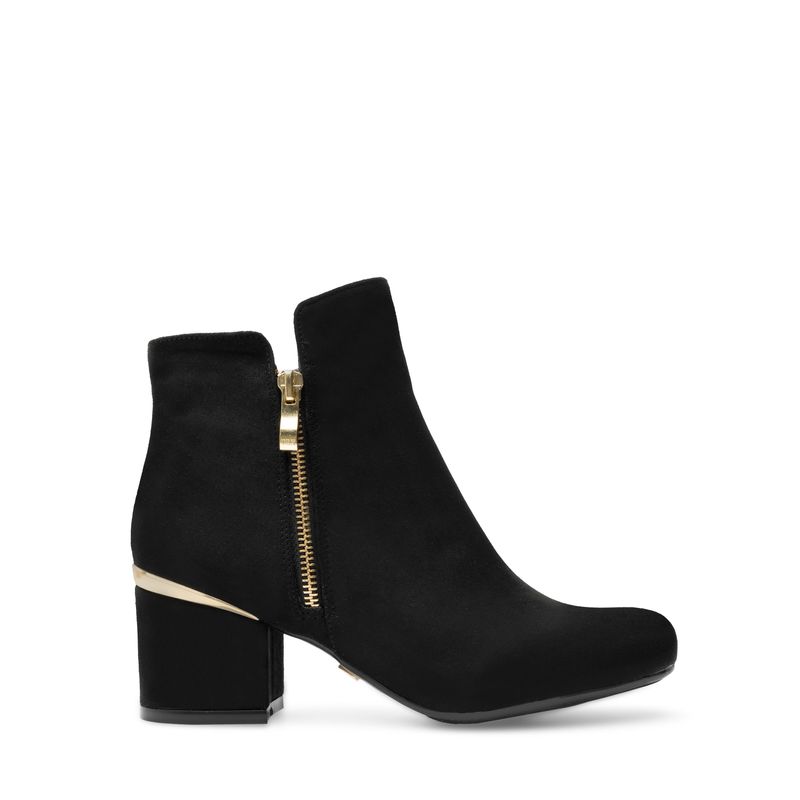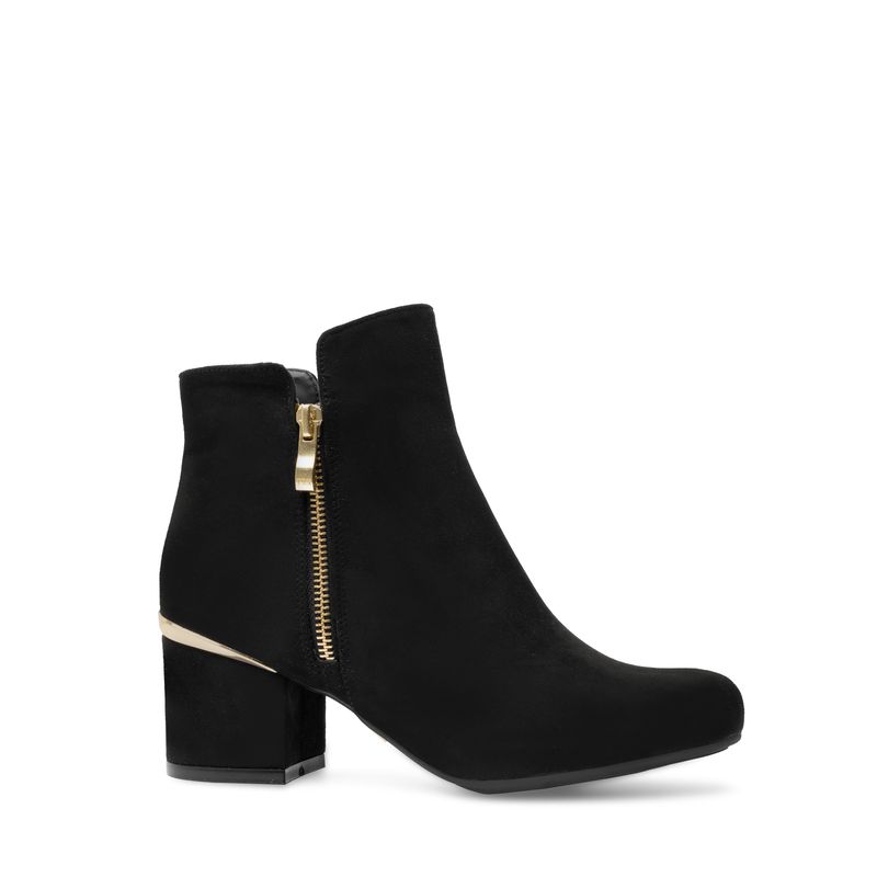 Este botín básico con textura de gamuza es el complemento ideal para cualquier look, añadiendo un toque de elegancia y sofisticación. Su cierre lateral en color oro y el delicado detalle dorado en el tacón le dan un acento sutil pero impactante, perfecto para destacar en cualquier ocasión. Versátil y elegante, este botín es una elección infalible para elevar tu estilo.
