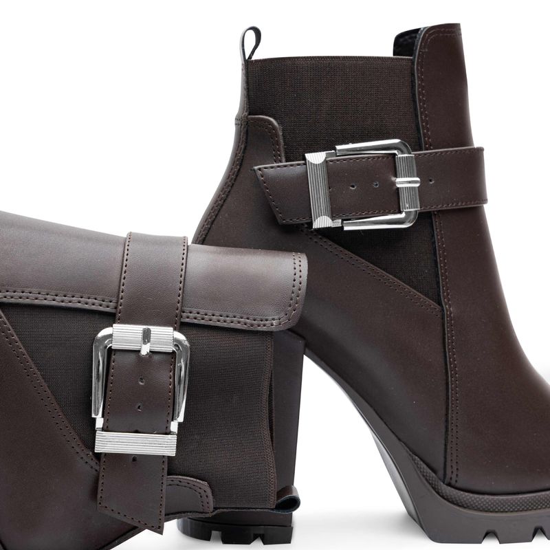 Este botín en color chocolate combina la sencillez de un diseño básico con el toque moderno de una cinta adornada con una hebilla en tono plata. El detalle metálico añade un toque de distinción que lo hace destacar, convirtiéndolo en el complemento ideal para cualquier outfit. Diseñado para ofrecer comodidad durante todo el día, su estructura versátil y elegante lo hace perfecto para lucir con jeans, faldas o vestidos. La calidad de los materiales y su diseño aseguran que te sientas cómoda mientras resaltas en cada ocasión.