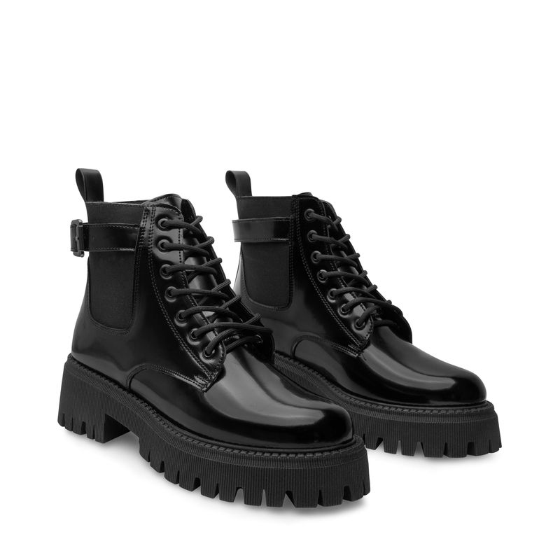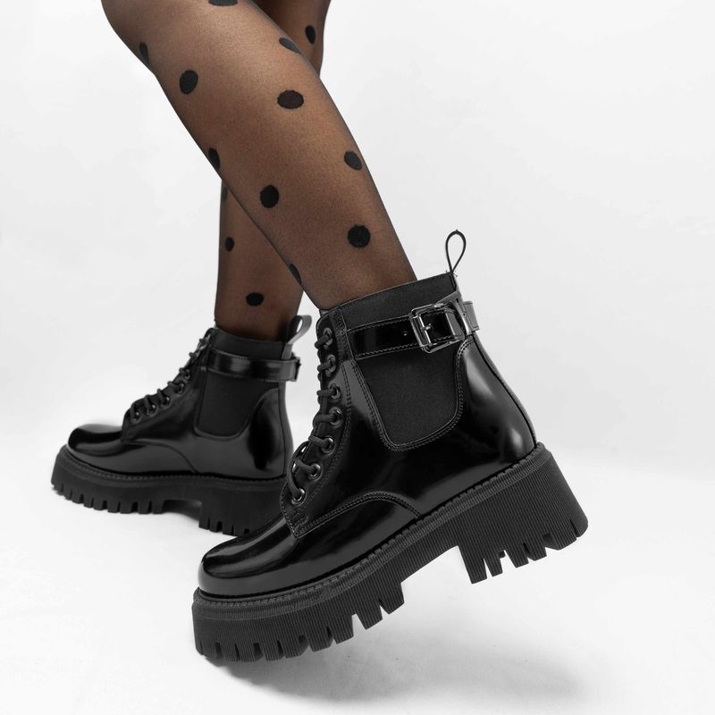 Dale un giro audaz a tu estilo con este botín color negro, diseñado para destacar en cualquier ocasión. Su silueta combina cintas ajustables y una suela gruesa que aporta un toque moderno y urbano. Además, cuenta con un detalle de cinta con hebilla ajustable que realza su carácter sofisticado y versátil. Perfectos para combinar con tus outfits favoritos, estos botines no solo ofrecen comodidad, sino también un estilo único que te hará brillar.