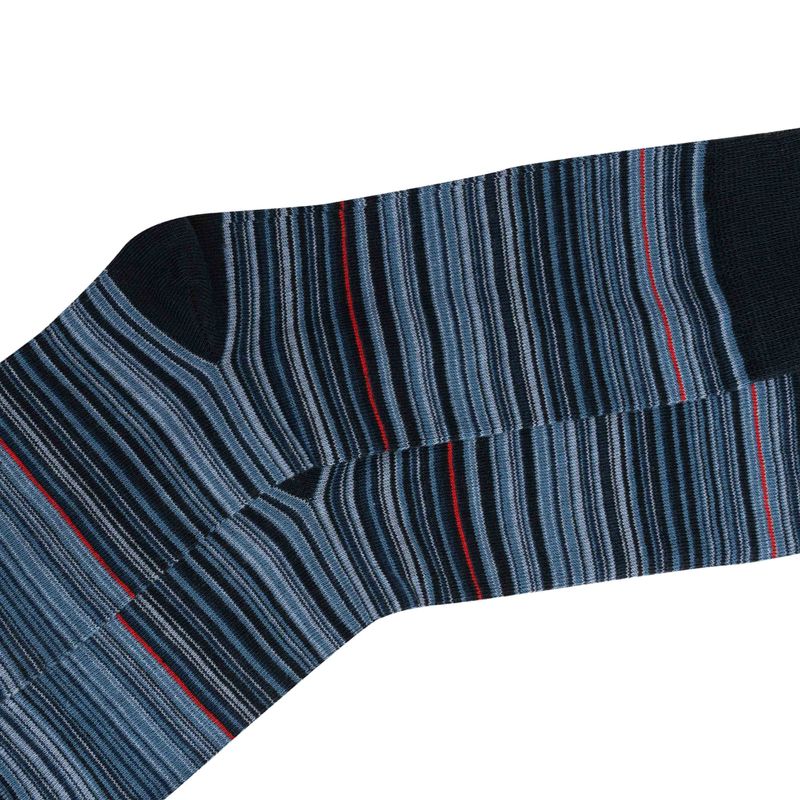 Dale un toque de estilo a tu día con este cómodo y versátil calcetín de la marca Dorothy Gaynor. Su diseño presenta rayas en tonos azul marino, celeste, gris y un sutil toque de rojo, ideal para quienes buscan un accesorio discreto pero con personalidad. Fabricado con materiales suaves y resistentes, brinda una sensación agradable durante todo el día. Perfecto para uso diario, tanto en looks casuales como semi-formales. Disponible individualmente o en paquete promocional.