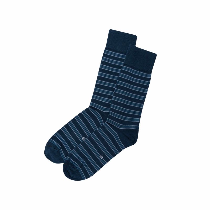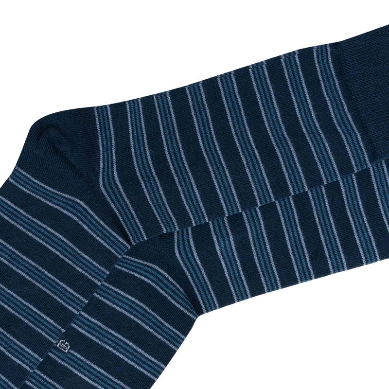"Este calcetín de la marca Dorothy Gaynor combina comodidad y estilo con un diseño de rayas horizontales en tonos azul marino y azul claro. Su tejido suave y elástico proporciona un ajuste cómodo durante todo el día, ideal para el uso diario en la oficina, la escuela o actividades casuales. Un básico moderno y versátil que se adapta perfectamente a cualquier guardarropa. Disponible en venta individual o en promoción por paquete.