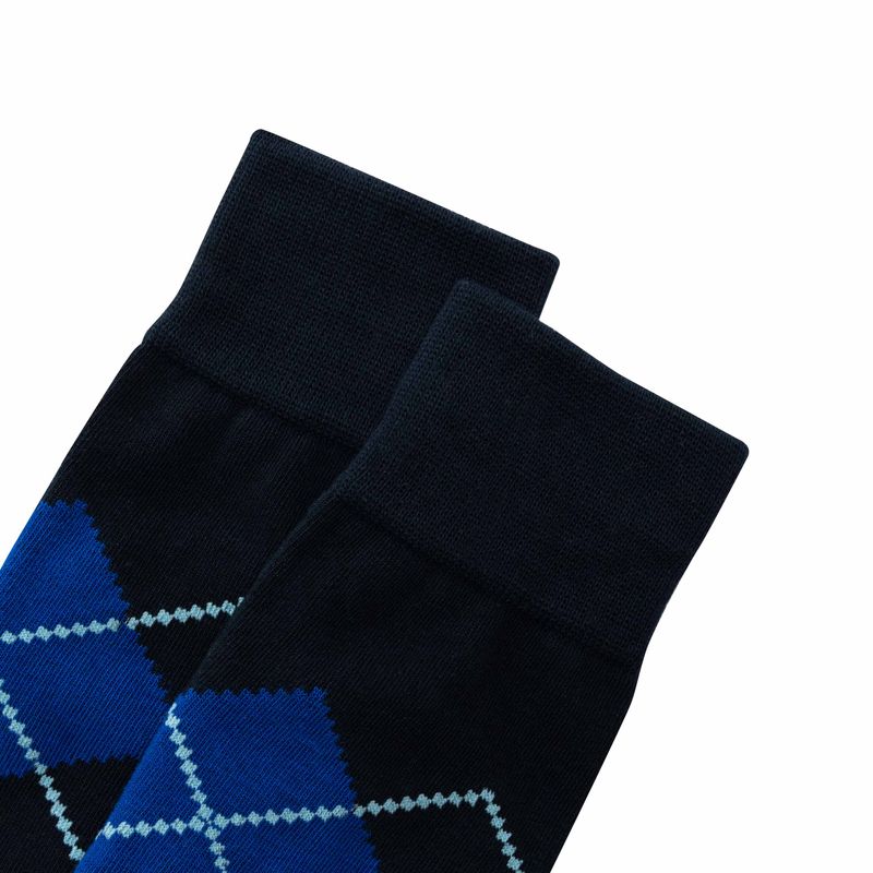 Dale un toque de personalidad a tu look con estos calcetines azul marino decorados con un vibrante diseño de rombos de colores. Su estilo clásico con un giro moderno los hace ideales para quienes disfrutan de los detalles originales sin perder la elegancia. Confeccionados en materiales suaves y cómodos, ofrecen un ajuste perfecto para el uso diario. Perfectos para expresar tu estilo con discreción y buen gusto.