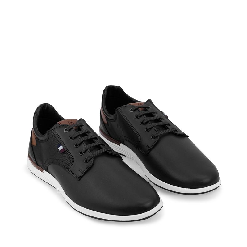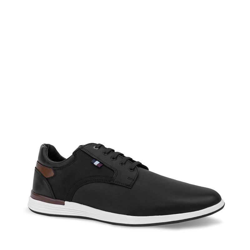 Este par de choclos son casuales y perfectos para darle un toque especial a tu estilo. Este par tiene un diseño clásico pero con toques de estilo y modernidad en todo el par. Tiene textura de perforado en los costados, agujetas, toque de color azul, suela especial para mayor comodidad y plantilla suave. Características. Material sintético | Color Negro | Agujetas | Toque color café | Altura suela 2 cm | Marca Hackney & Woods