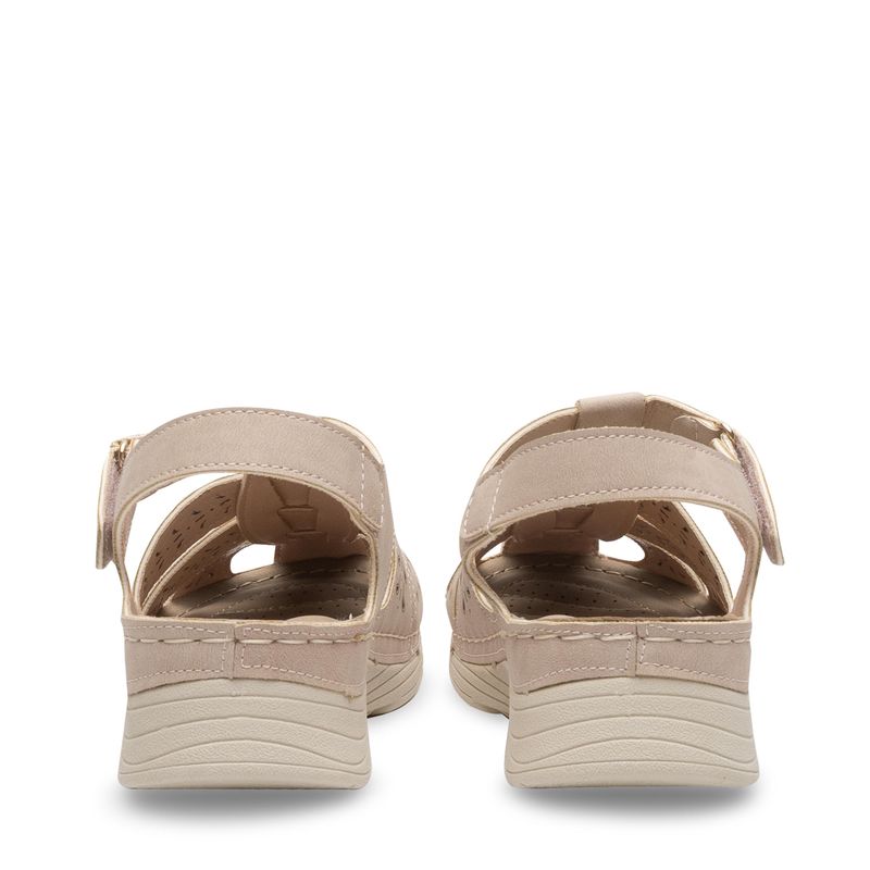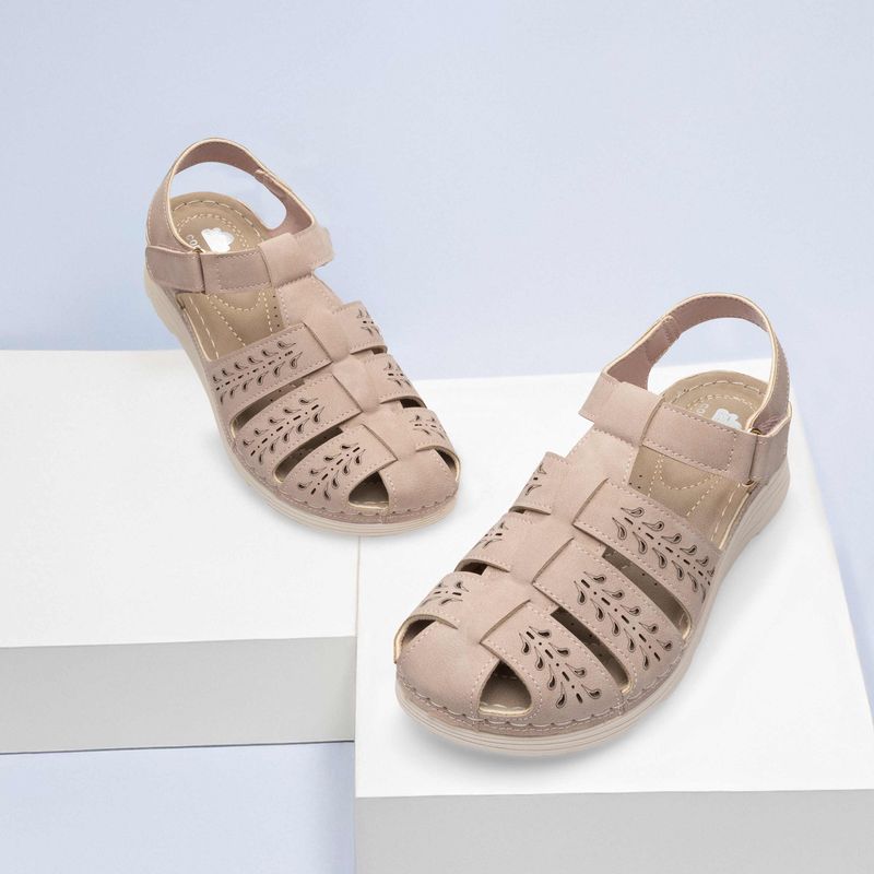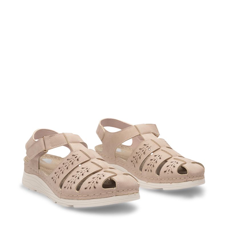 Sandalia de confort para dama en color rosa, con un delicado diseño artesanal que combina estilo y funcionalidad. Presenta detalles decorativos en la cinta central y el empeine. Su práctica pulsera con cierre de velcro permite un ajuste cómodo y seguro. La suela en tono blanca, de acabado ligero y flexible, proporciona estabilidad y confort durante todo el día. Ideal para un look femenino, fresco y relajado.