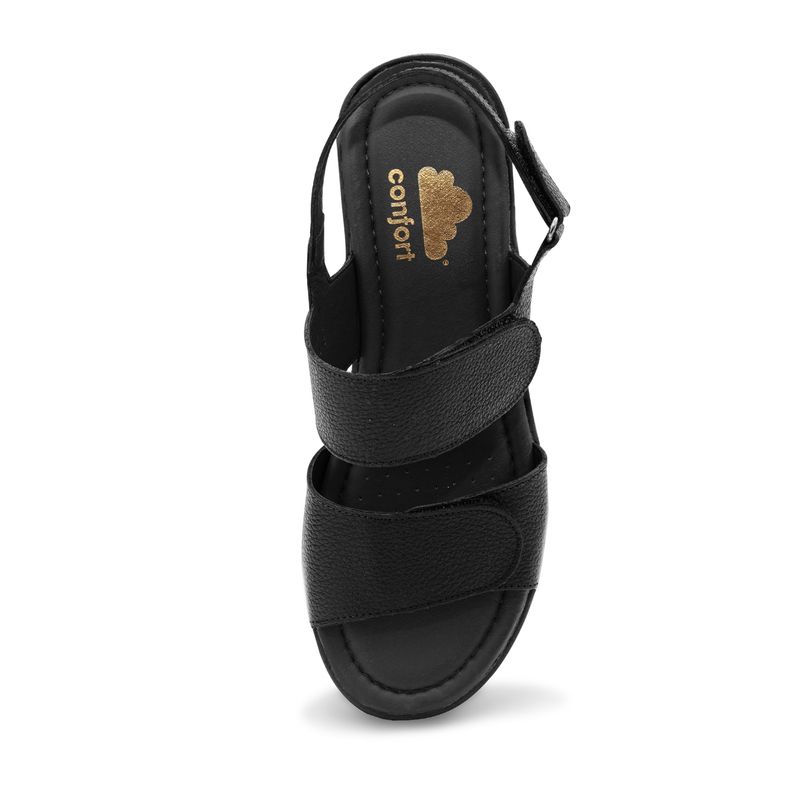 Estas sandalias confort son de las que vas a querer llevartelas a todos lados ya que su plantilla suave te acompañará a cualquier aventura además de su suela anti caídas que te mantendrá segura en cada paso, además de su hebilla ajustable y su doble velcro. Características. Material sintético | Color Negro | Velcro | Hebilla ajustable | Altura suela 2.5 cm | Marca Confort