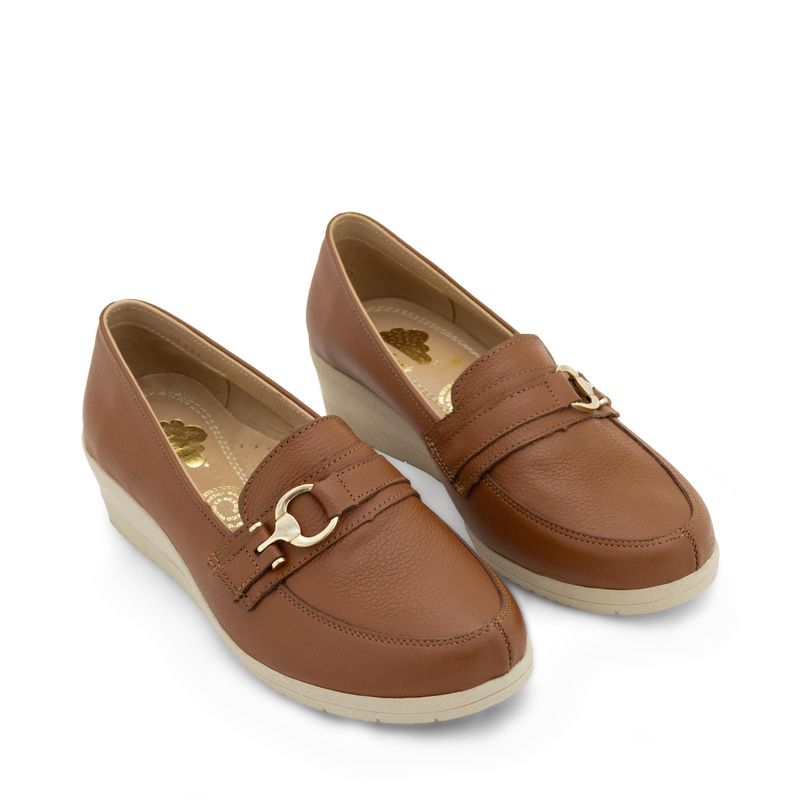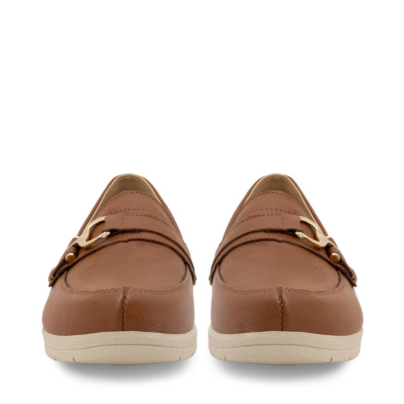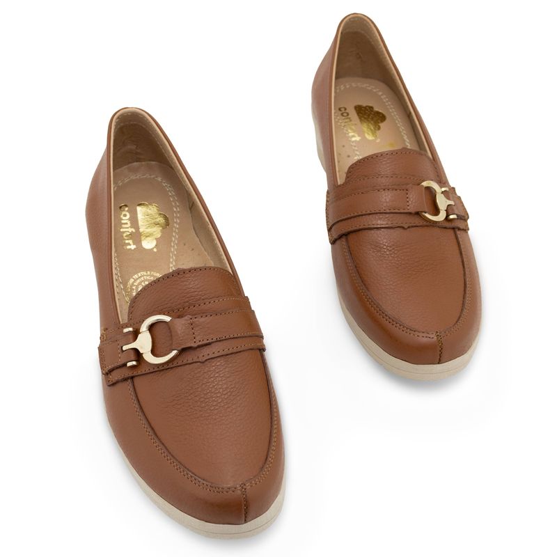 Añade un toque de elegancia a tu comodidad diaria con este calzado en color tan, diseñado para ofrecerte el máximo confort. Su característica más destacada es el detalle de hebilla dorada en la parte delantera, que aporta un acento sofisticado y moderno. La plantilla acolchada y la suela flexible aseguran que te sientas cómoda durante todo el día, sin sacrificar el estilo. Ideal para quienes buscan un calzado que combine funcionalidad y un toque de lujo, este modelo es perfecto para acompañarte en cualquier ocasión.