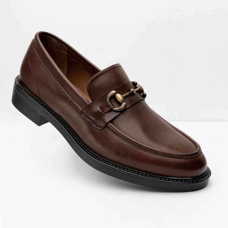 Este mocasín para caballero combina un diseño clásico y sofisticado con la practicidad de un calzado cómodo y versátil. En un elegante color café obscuro, destaca su detalle de hebilla en tono plata en el empeine, añadiendo un toque de distinción sin perder su esencia atemporal. Su ajuste confortable y su construcción ligera lo convierten en la opción ideal para cualquier ocasión, desde la oficina hasta eventos casuales.