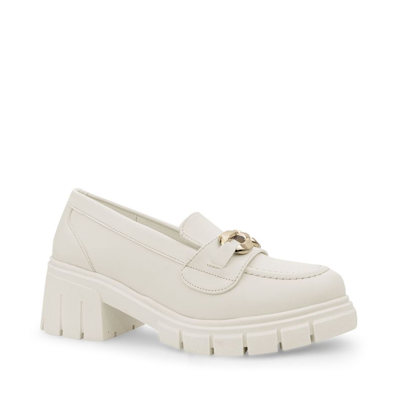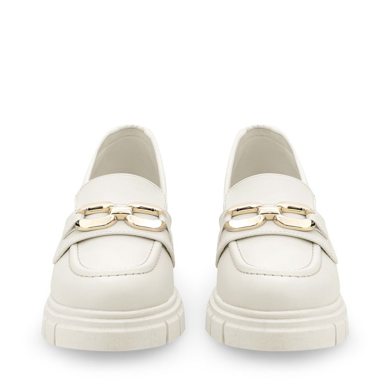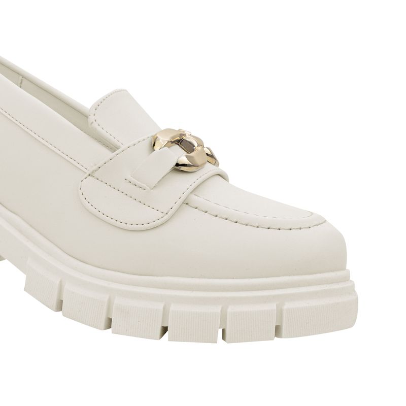 Estos mocasines serán tus nuevos favoritos para llevar a cualquier ocasión, este par tiene el balance ideal entre comodidad y diseño, este par le dará un toque noventero a tu estilo ¿te atreves a usarlos? Características: Material sintético | Color Hueso | Detalle dorado | Tacón 6 cm | Marca Dorothy Gaynor