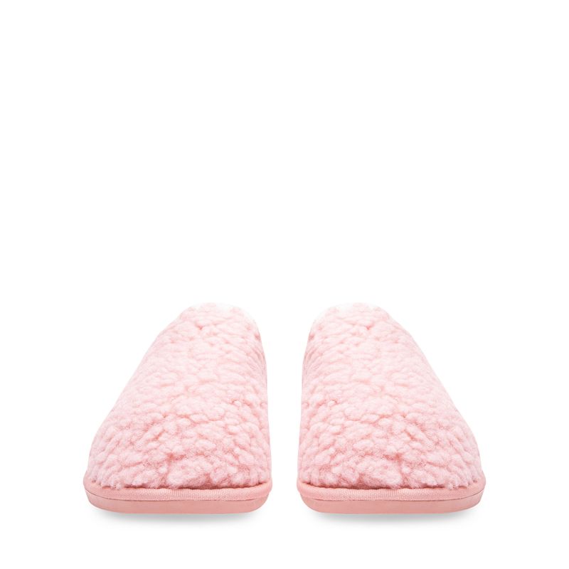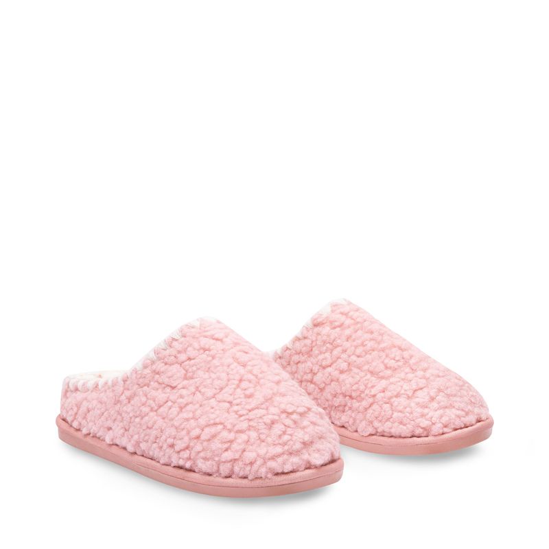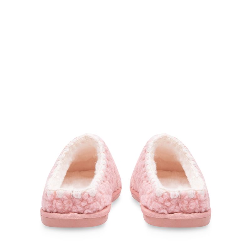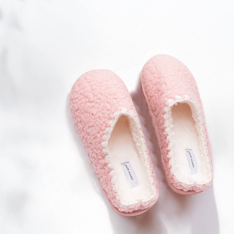 Ideal para mantener tus pies abrigados, esta pantufla presenta una textura tipo borreguito en tono rosa pastel, que ofrece una sensación ultra suave y acogedora. El borde está decorado con un detalle tejido en zigzag color crema, que aporta un acabado artesanal y femenino. Su suela ligera proporciona comodidad en cada paso dentro de casa. Un diseño cálido, adorable y perfecto para el descanso diario.