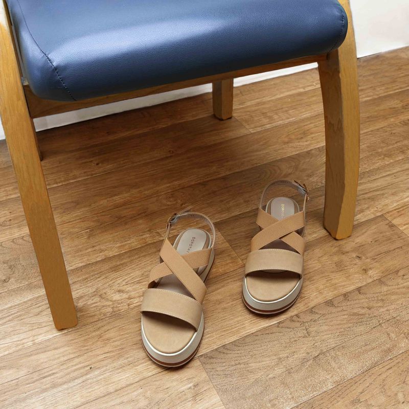 Añade un toque de estilo casual a tu día con esta sandalia en color camel, diseñada con cintas centrales cruzadas que aportan un look moderno y elegante. Su cinta ajustable con hebilla en tono oro no solo asegura un ajuste perfecto, sino que también añade un detalle sofisticado que realza su diseño. La suela cómoda está pensada para brindarte confort en cada paso, haciendo de esta sandalia la elección ideal para días relajados o paseos informales. Perfecta para complementar cualquier outfit casual, esta pieza es un básico imprescindible en tu colección.