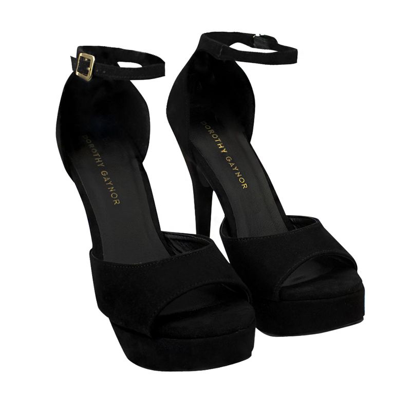 Vas a amar por completo este par de sandalias, tienen un diseño increíble con punta descubierta, hebilla ajustable y tacón de agujeta que te ayudará a estilizar tu figura. Lo mejor de este par es que gracias a su plataforma estarás cómoda todo el tiempo sin importar la aventura que estes viviendo. Características: Material sintético | Color Negro | Hebilla ajustable | Tacón 13 cm | Marca DOROTHY