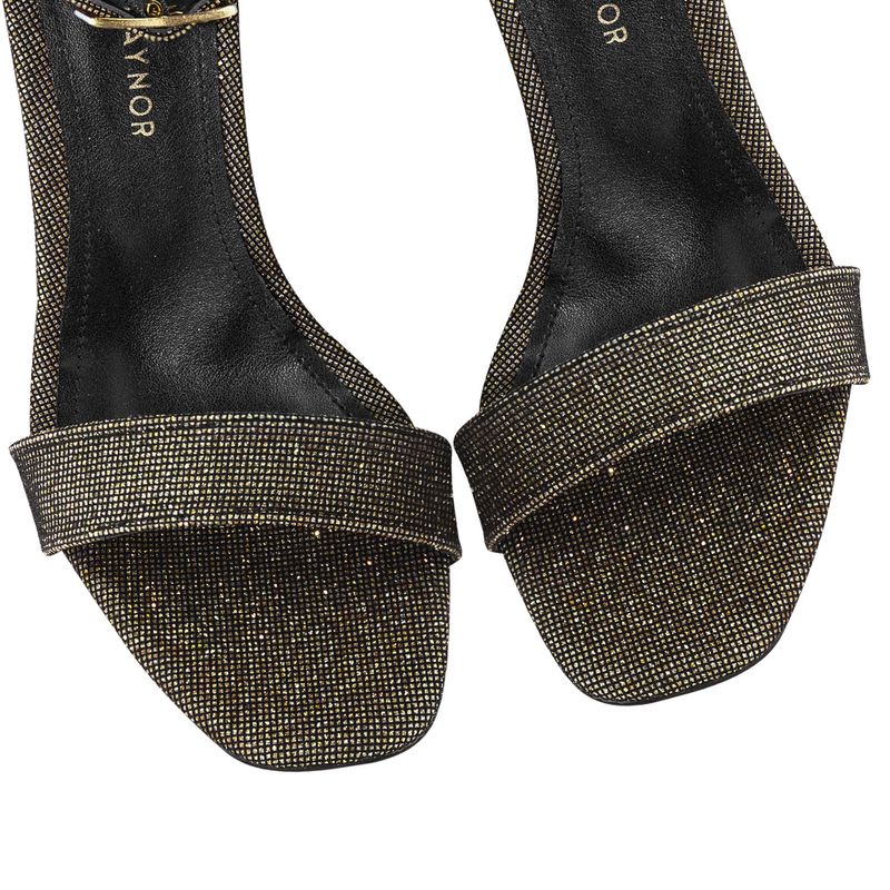 Si quieres lucir increíble a donde quiera que las lleves, este par de sandalias es el indicado para ti. Tienen un diseño súper padre con punta redonda, hebilla en el tobillo y todo esta lleno de brillos para que luzcas increíble. Características: Material sintético | Color Oro | Hebilla Ajustable | Brillos | Tacón 10 cm