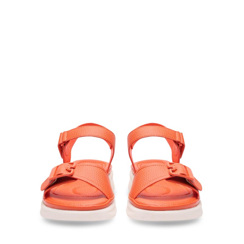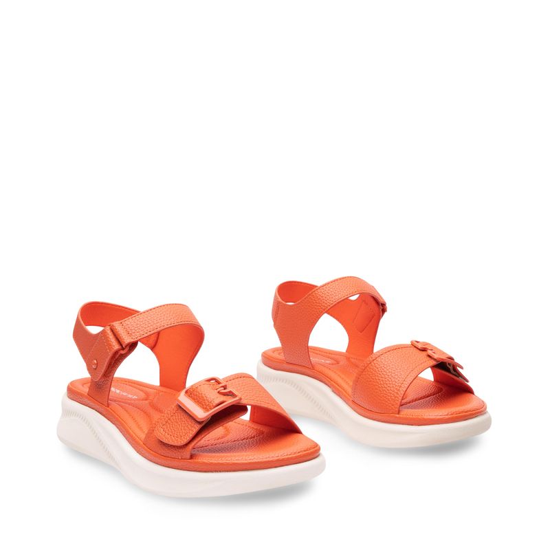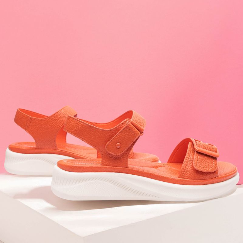 Diseñada para quienes buscan practicidad sin perder estilo, esta sandalia confort naranja tipo slide es ideal para el día a día. Con dos tiras anchas de textura tipo piel y broches ajustables, ofrece un calce firme y adaptable. Su suela bicolor en contraste blanco, no solo aporta un toque moderno, sino que también brinda ligereza y comodidad en cada paso. Perfecta para combinar con jeans, bermudas o looks casuales relajados.