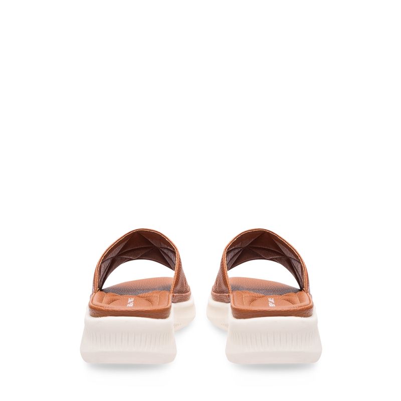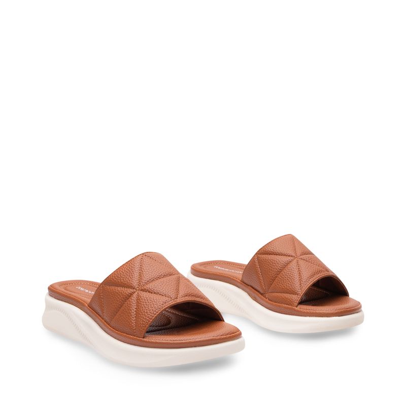 Diseñada para quienes buscan practicidad sin perder estilo, esta sandalia confort camel tipo slide es ideal para el día a día. Con una tira ancha de textura tipo piel, ofrece un calce firme y adaptable. Su suela bicolor en contraste blanco no solo aporta un toque moderno, sino que también brinda ligereza y comodidad en cada paso. Perfecta para combinar con jeans, bermudas o looks casuales relajados.