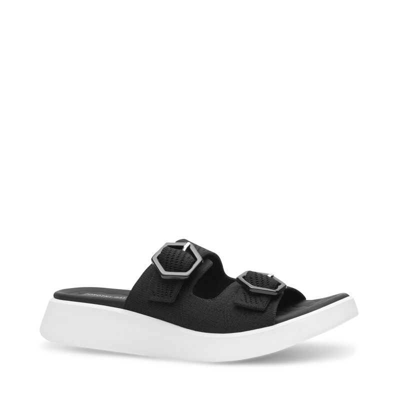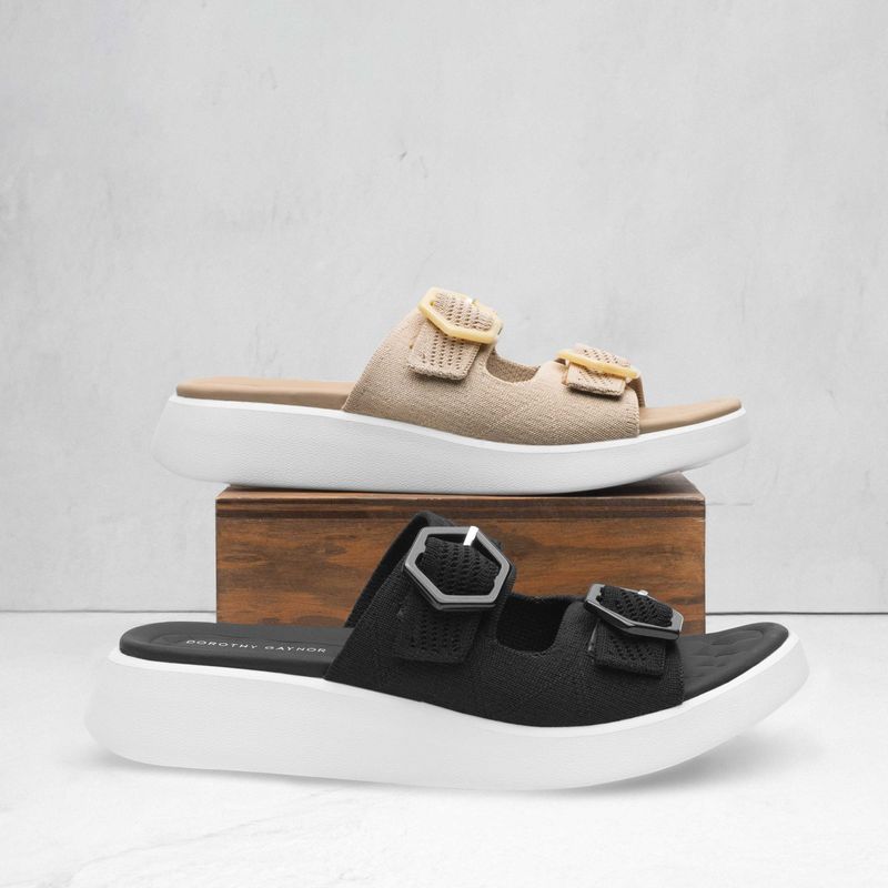 Comodidad absoluta en un diseño moderno y funcional. Esta sandalia tipo slide destaca por su capellada textil con textura suave y doble hebilla que permite un ajuste personalizado. Su suela chunky blanca ofrece una pisada ligera y amortiguada, perfecta para caminar durante horas sin cansancio. Ideal para looks relajados, viajes, días de descanso o para quienes buscan estilo minimalista con máximo confort.