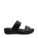 Estas sandalias en color negro combinan elegancia atemporal con un toque moderno que ilumina cada paso. Su talón descubierto aporta ligereza y un estilo fresco, perfecto para looks tanto de día como de noche. El diseño se realza con un detalle de brillos en tono plata en la parte frontal, creando un contraste sutil pero sofisticado. A un lado, una correa lateral adornada con un remache en color negro añade carácter y equilibrio al conjunto, manteniendo una estética pulida y contemporánea.