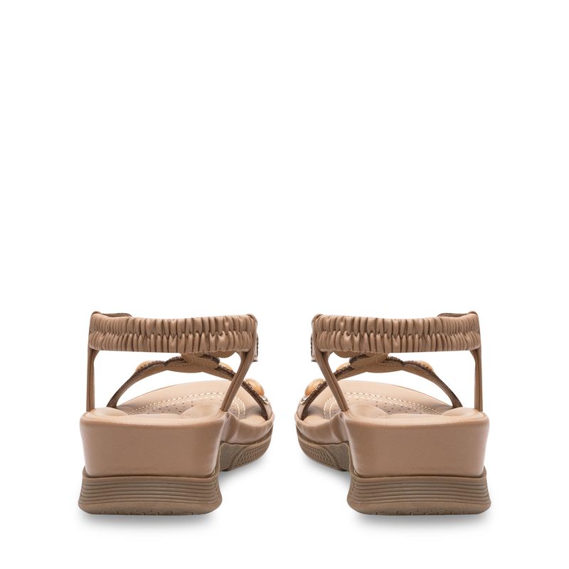 Nuestra sandalia camel con detalle de pedrería es el balance perfecto entre comodidad y estilo. Su diseño incorpora piezas circulares tipo piedra en tonos miel y cristal al centro, enmarcadas con microbrillos que aportan un toque elegante sin perder naturalidad. La suela acolchada con costuras decorativas garantiza confort durante todo el día, mientras que la banda elástica trasera se ajusta suavemente al pie para una pisada segura. Ideal para días cálidos, looks casuales o para darle un acento chic a cualquier outfit.