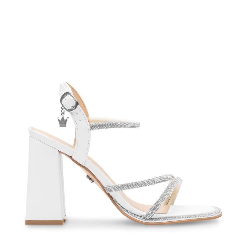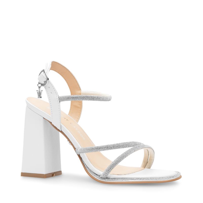 Luce elegante y sofisticada con estas sandalias en color plata, el toque perfecto para tus ocasiones especiales. Las cintas centrales adornadas con brillos añaden un destello de glamour, mientras que la cinta ajustable con hebilla en tono oro asegura un ajuste perfecto y cómodo. Su tacón grueso proporciona estabilidad sin sacrificar estilo, convirtiéndolas en la opción ideal para un look deslumbrante y cómodo al mismo tiempo.