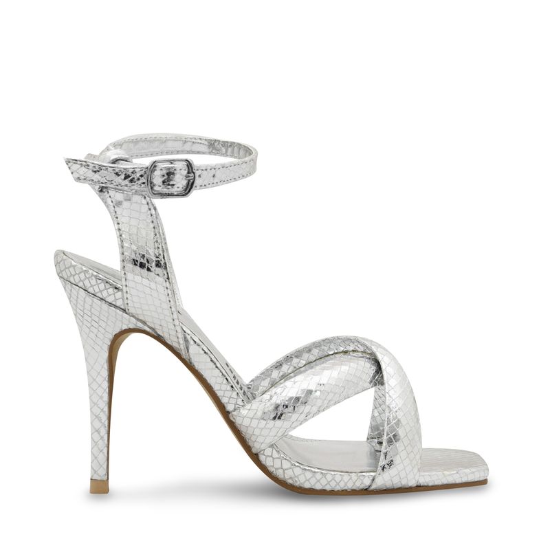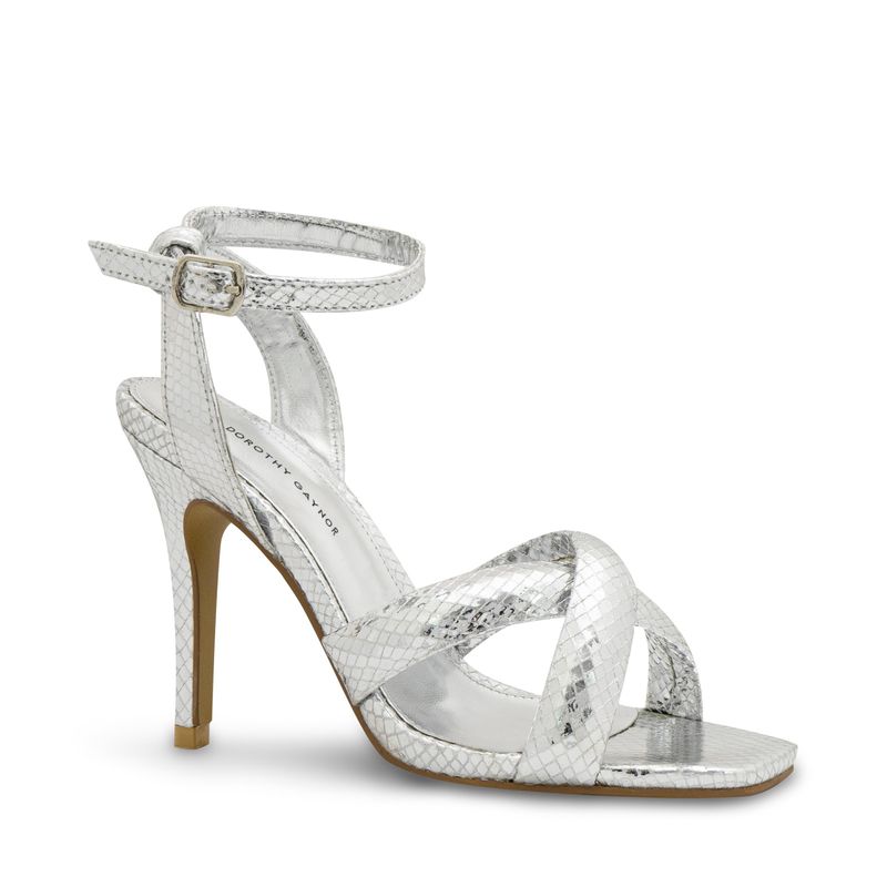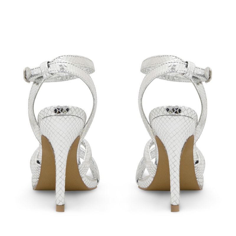 Deslumbra con estas elegantes sandalias en color plata con una sofisticada textura de croco. Las cintas centrales cruzadas añaden un toque moderno, mientras que la cinta ajustable con hebilla asegura un ajuste perfecto. Ideales para complementar cualquier atuendo, estas sandalias son la elección perfecta para un look chic y sofisticado.