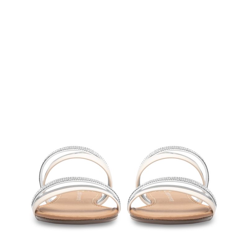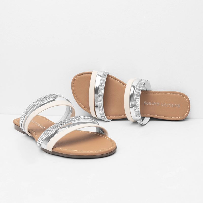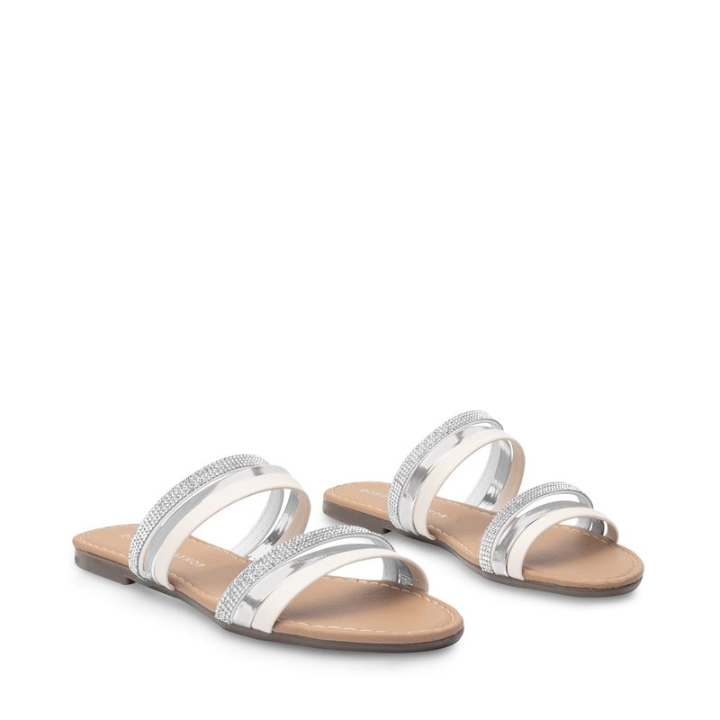 Eleva tus looks casuales con esta sandalia blanca que combina estilo y comodidad a la perfección. Sus cintas centrales con detalles brillantes añaden un toque de luminosidad y elegancia, mientras que su diseño permite un ajuste perfecto para garantizar tu confort durante todo el día. Ideal para esos días casuales donde no quieres sacrificar ni estilo ni comodidad, esta sandalia te permitirá lucir radiante sin esfuerzo.