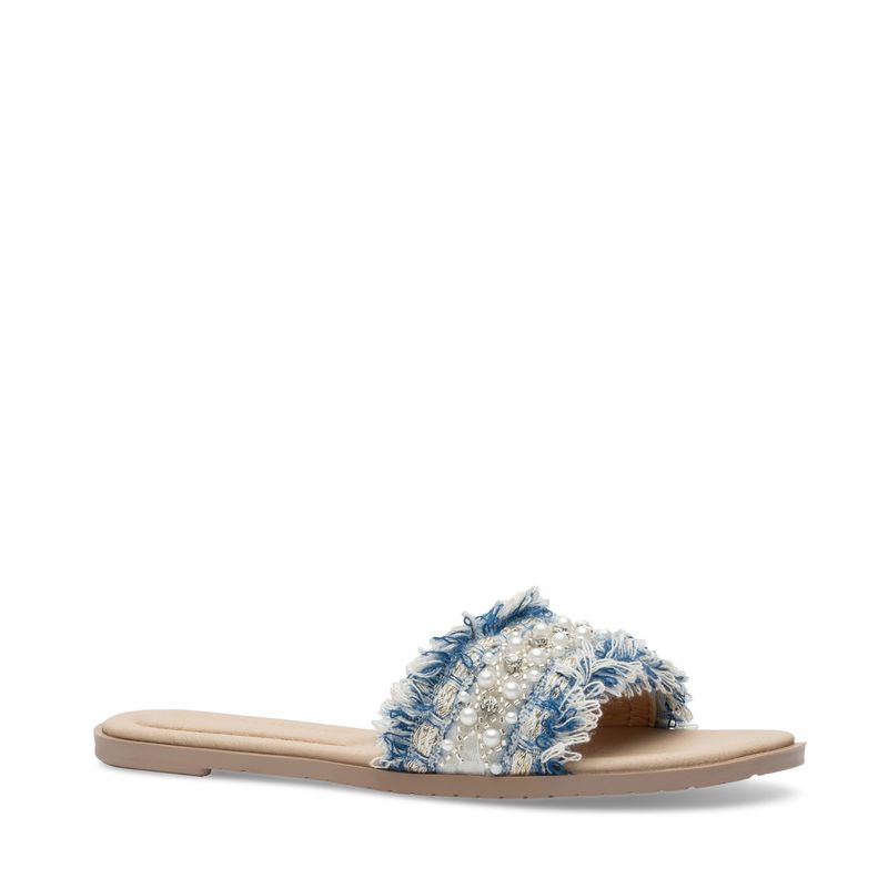 Añade un toque de elegancia a tus pasos con esta sandalia en un hermoso tono azul medio. Su diseño destaca por una increíble cinta central adornada con detalles tejidos y pequeñas piedras con brillos, que le aportan un aire sofisticado y llamativo. Perfecta para complementar tus looks con un estilo fresco y cómodo, esta sandalia es ideal para cualquier ocasión, desde un día casual hasta una salida especial. Su diseño combina funcionalidad y glamour para que luzcas increíble en cada paso.