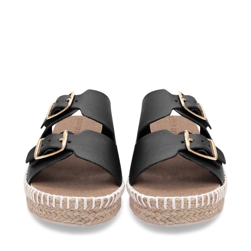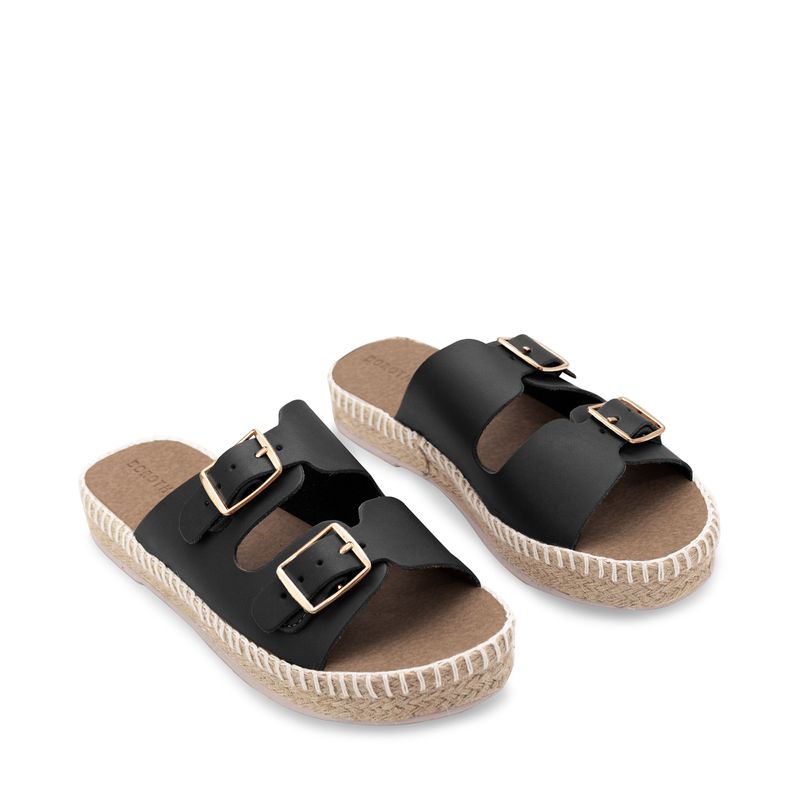 Estas sandalias nos encantan y sabemos que pasará lo mismo contigo, el diseño de estas sandalias es de los que te mantienen cómoda y luciendo espectacular en todo momento. Estas sandlias te permiiten ajustarlas gracias a su doble hebilla por lo que te sentirás segura en todo momento. El contraste de la suela forrada de yute y el color negro se volverá de tus favoritas. Características. Material sintético | Color Negro | Hebilla ajustable | Altura suela 3 cm | Marca Dorothy Gaynor