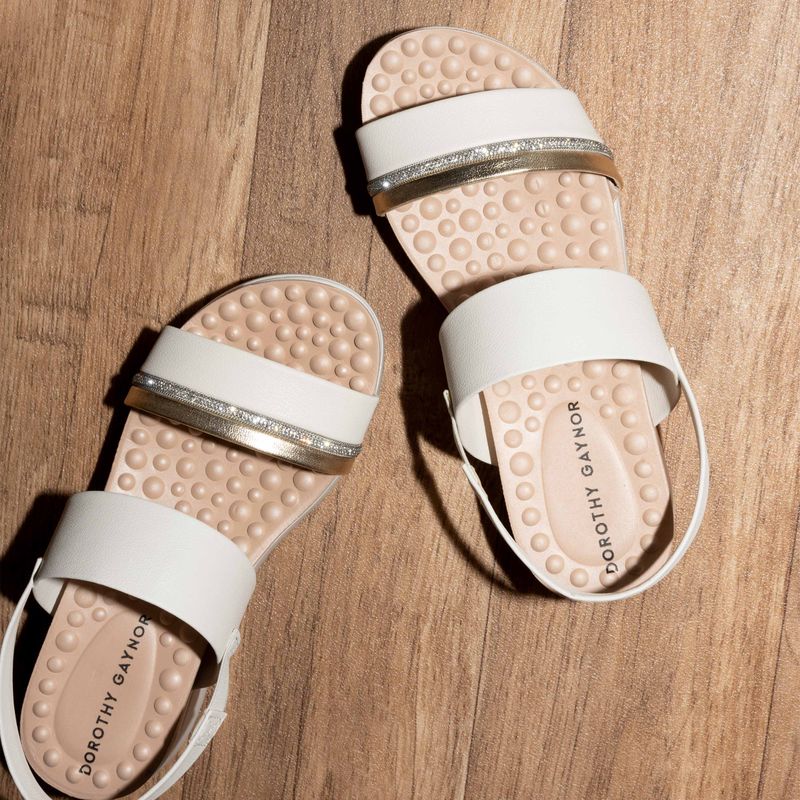 Luce sofisticada y cómoda con esta sandalia en color latte, diseñada para destacar con un toque de elegancia. Su cinta central decorada con detalles en tonos oro y plata añade un aire moderno y chic que eleva cualquier look. Cuenta con una suela ultra cómoda que te permite disfrutar de largas jornadas sin esfuerzo, además de una cinta de soporte adicional que brinda estabilidad y un ajuste perfecto. Ideal para combinar con tus outfits favoritos en días casuales o eventos relajados, esta sandalia es el complemento perfecto para tu guardarropa.