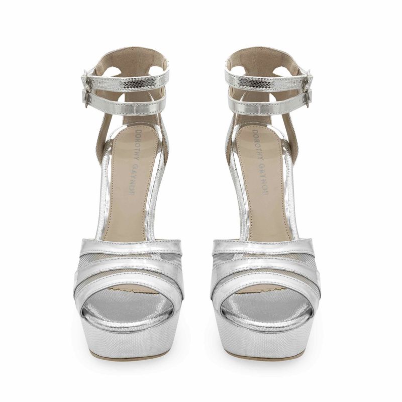 Estas sandalias están listas para acompañarte a cualquier fiesta, este par tiene un diseño que te permitirá darlo todo y mantenerte súper cómoda en cualquier ocasión. Este par tiene un diseño con punta redonda, tacón cuadrado, doble hebilla ajustable y terminación brillosa. Características. Material sintético | Color Plata | Doble hebilla ajustable | Tacón 14 cm | Marca Dorothy Gaynor