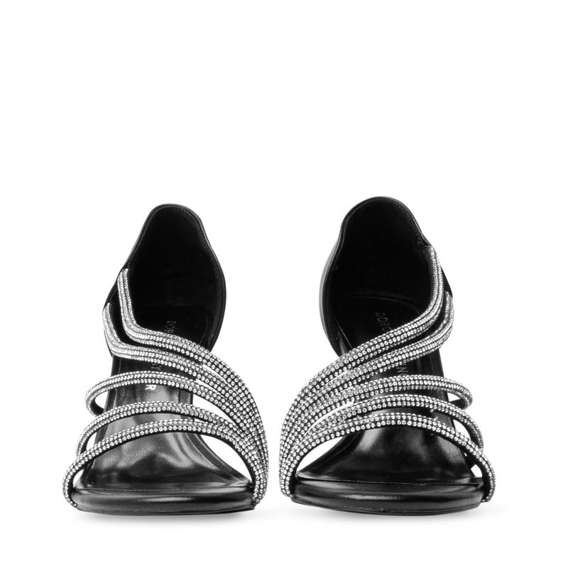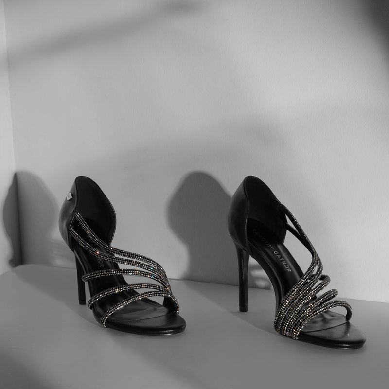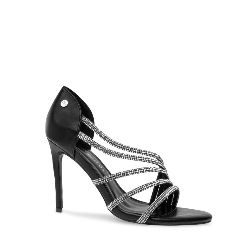Nuestra sandalia color negro es el toque perfecto de glamour que necesitas para realzar tu estilo. Las delicadas cintas centrales con brillos añaden un destello especial, haciendo que cada paso destaque con elegancia. Diseñada para hacerte lucir increíble en cualquier ocasión, esta sandalia es ideal para eventos especiales o para darle un toque chic a tus look. ¡Un calzado pensado para que brilles con estilo y sofisticación en cada momento! Características.