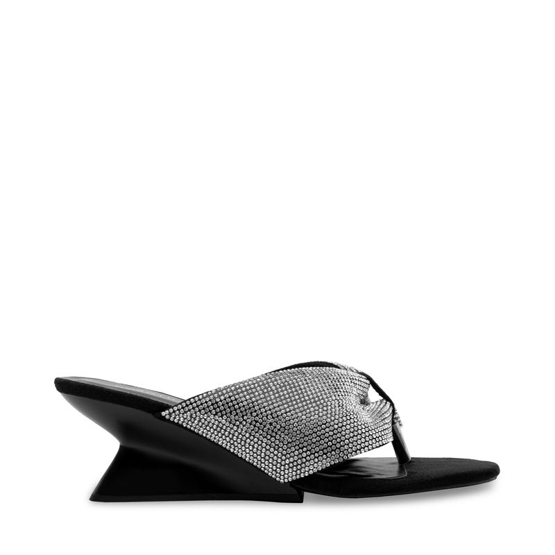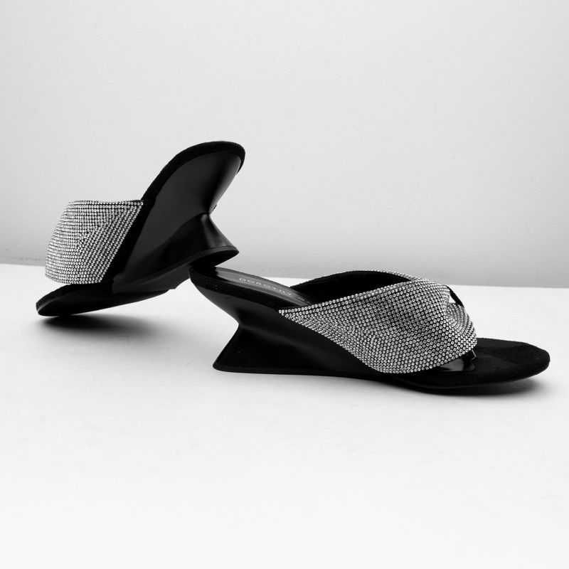Añade un toque de glamour a tu look con esta sandalia negra de diseño sofisticado. Sus increíbles cintas centrales adornadas con brillos le dan un acabado elegante y llamativo, ideal para ocasiones especiales o para elevar tu estilo diario. Su tacón bajo brinda la comodidad perfecta para usarla durante todo el día sin renunciar a la sofisticación. Ligera, versátil y con un ajuste seguro, esta sandalia es el complemento ideal para lucir con confianza y estilo en cualquier momento.