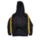 Sudadera color negro con estampado de grecas con acabado de terciopelo, linea amarilla