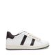 Renueva tu estilo casual con este tenis clásico que combina diseño limpio y toques vintage. Su cuerpo en color blanco se complementa con paneles laterales en tono café profundo que añaden contraste y un aire retro muy actual. La suela en tono crema aporta un acabado cálido que enmarca perfectamente el diseño, mientras que las agujetas tejidas en tono natural le dan un toque auténtico y artesanal. Un tenis versátil, pensado para acompañarte en looks relajados, jeans rectos o outfits urbanos con un giro sofisticado.