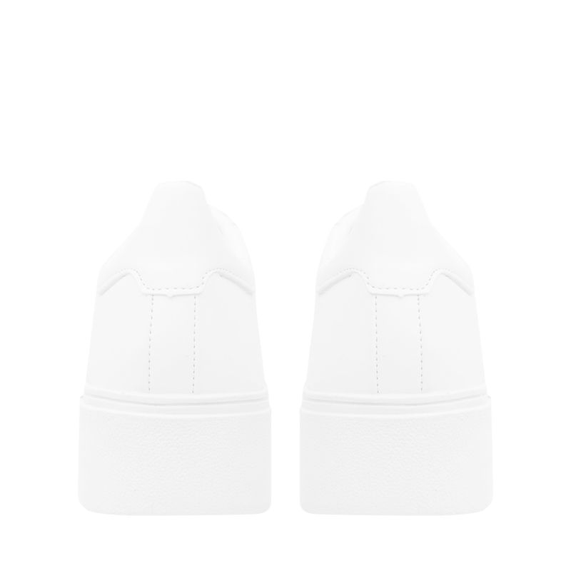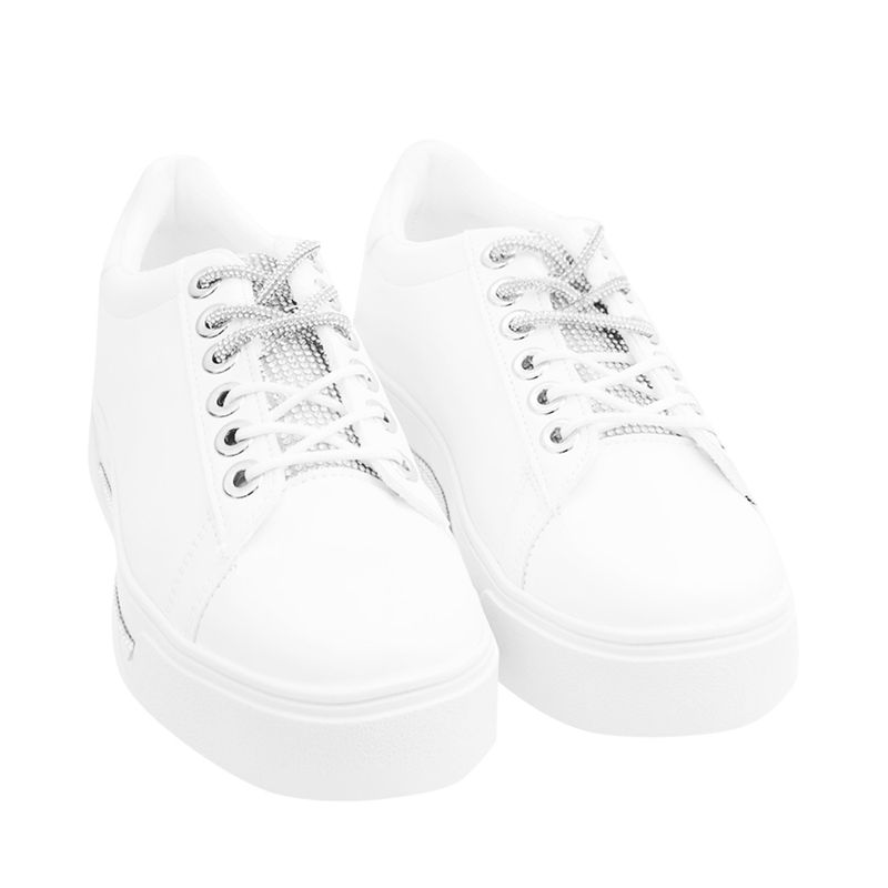 Este tenis es el par perfecto para complementar cualquier look y darle un toque único a tu estilo. Este par es de los básicos que debes de tener en tu clóset, tiene un diseño con punta redonda, plataforma y detalles en pedrería que los hará tus favoritos. Características: Material sintético | Color Blanco | Pedrería | Altura suela 3 cm