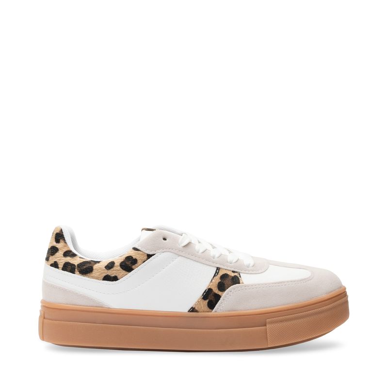 Estilo urbano con un toque salvaje. Los Tenis Thalia combinan la frescura del blanco con el carácter del estampado animal print tipo leopardo en textura peluche, creando un diseño moderno y atrevido. El contraste entre tonos neutros y el patrón llamativo aporta personalidad sin perder elegancia. Su suela caramelo brinda comodidad para el día a día, mientras que los acabados en sintético de alta calidad aseguran durabilidad y versatilidad. Ideales para quienes buscan destacar con un estilo casual, chic y con mucha actitud.