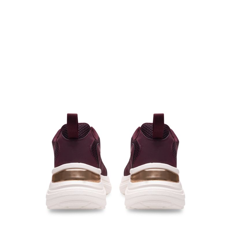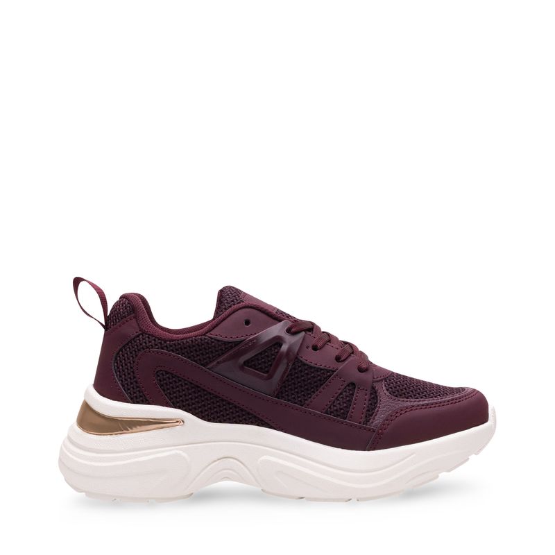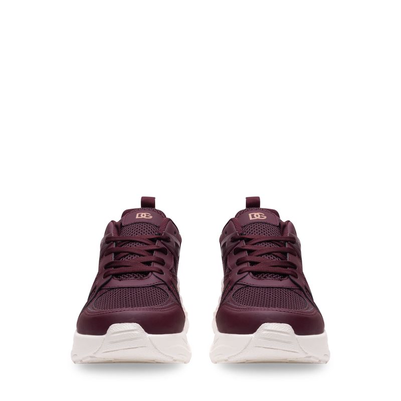 Este tenis deportivo combina tecnología, estilo y comodidad. Su base en malla tejida color vino permite mayor transpiración, mientras que los refuerzos sintéticos brindan soporte en cada paso. La suela blanca de volumen medio está moldeada para absorber impacto y aportar estabilidad. En el talón, un detalle metálico en tono rose gold aporta un toque moderno y sofisticado que eleva todo el diseño. Un modelo perfecto para quienes buscan rendimiento sin sacrificar estilo.
