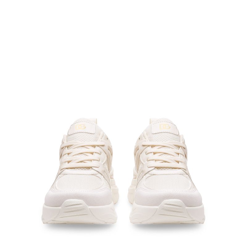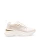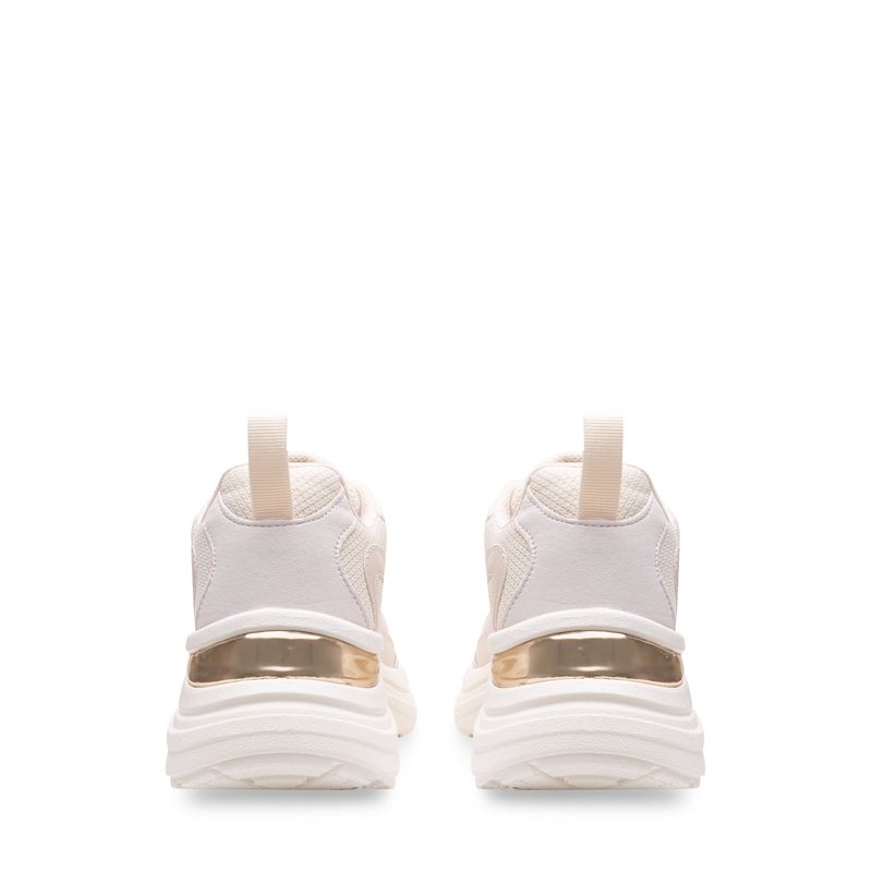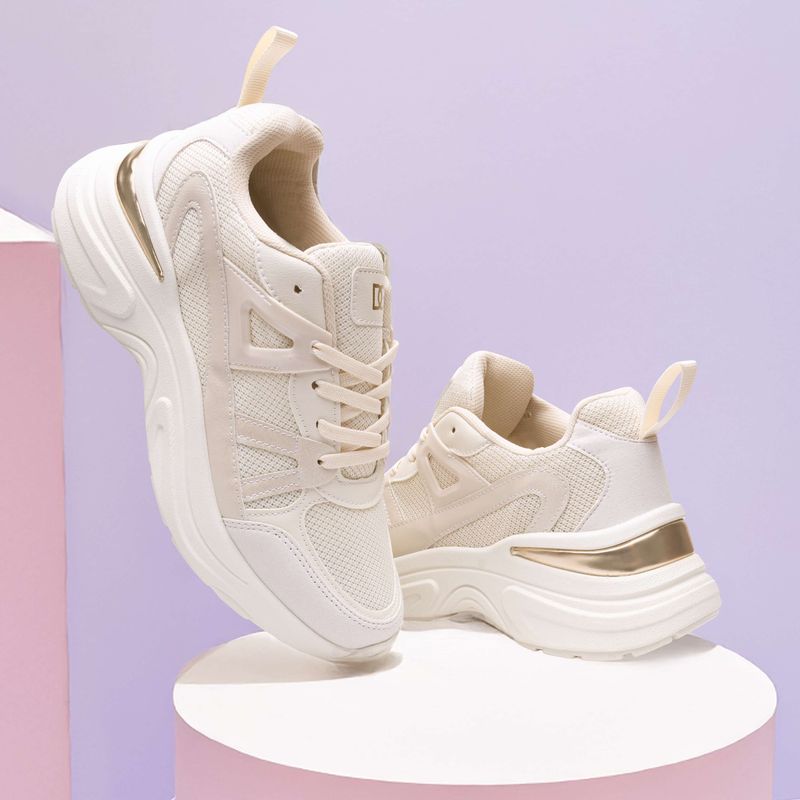 Este tenis deportivo combina tecnología, estilo y comodidad. Su base en malla tejida color latte permite mayor transpiración, mientras que los refuerzos sintéticos brindan soporte en cada paso. La suela blanca de volumen medio está moldeada para absorber impacto y aportar estabilidad. En el talón, un detalle metálico en tono rose gold aporta un toque moderno y sofisticado que eleva todo el diseño. Un modelo perfecto para quienes buscan rendimiento sin sacrificar estilo.