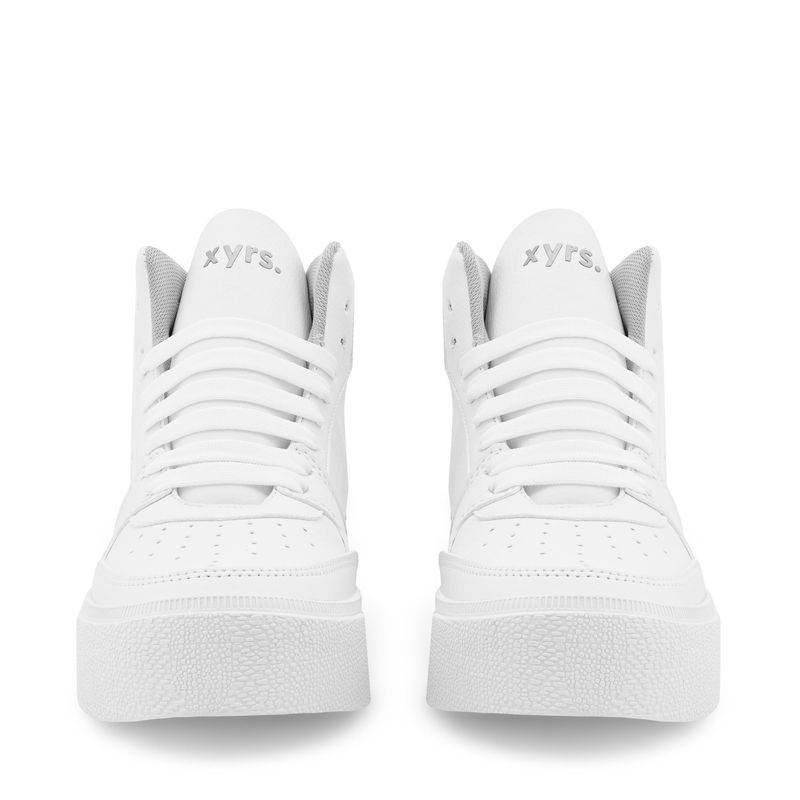 Estos tenis de bota en color blanco son el básico perfecto para combinar con cualquier look. Su diseño limpio y versátil los convierte en un imprescindible en tu guardarropa. Equipados con cintas ajustables, aseguran un ajuste cómodo y personalizado. Perfectos para añadir un toque moderno a tu estilo, estos tenis de bota ofrecen tanto funcionalidad como moda, siendo ideales para cualquier ocasión.