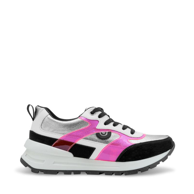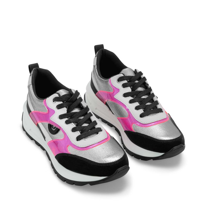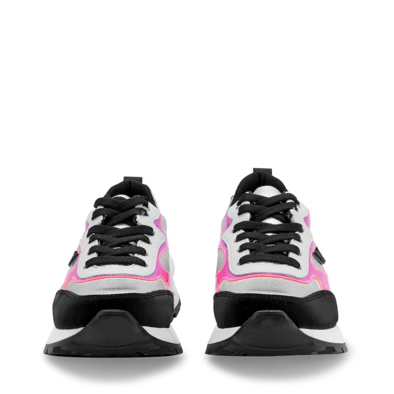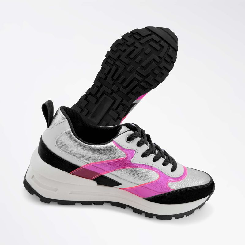 Tenis en color negro con elegantes detalles en tonos plata y rosa que le aportan un toque moderno y femenino. Sus cintas ajustables garantizan un ajuste perfecto y comodidad durante todo el día. Diseñados para brindar estilo y confort, son la opción ideal para tus looks diarios, fusionando versatilidad y tendencia.